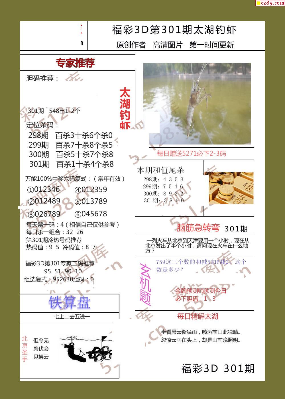 25年301期福彩铁算盘3d画谜